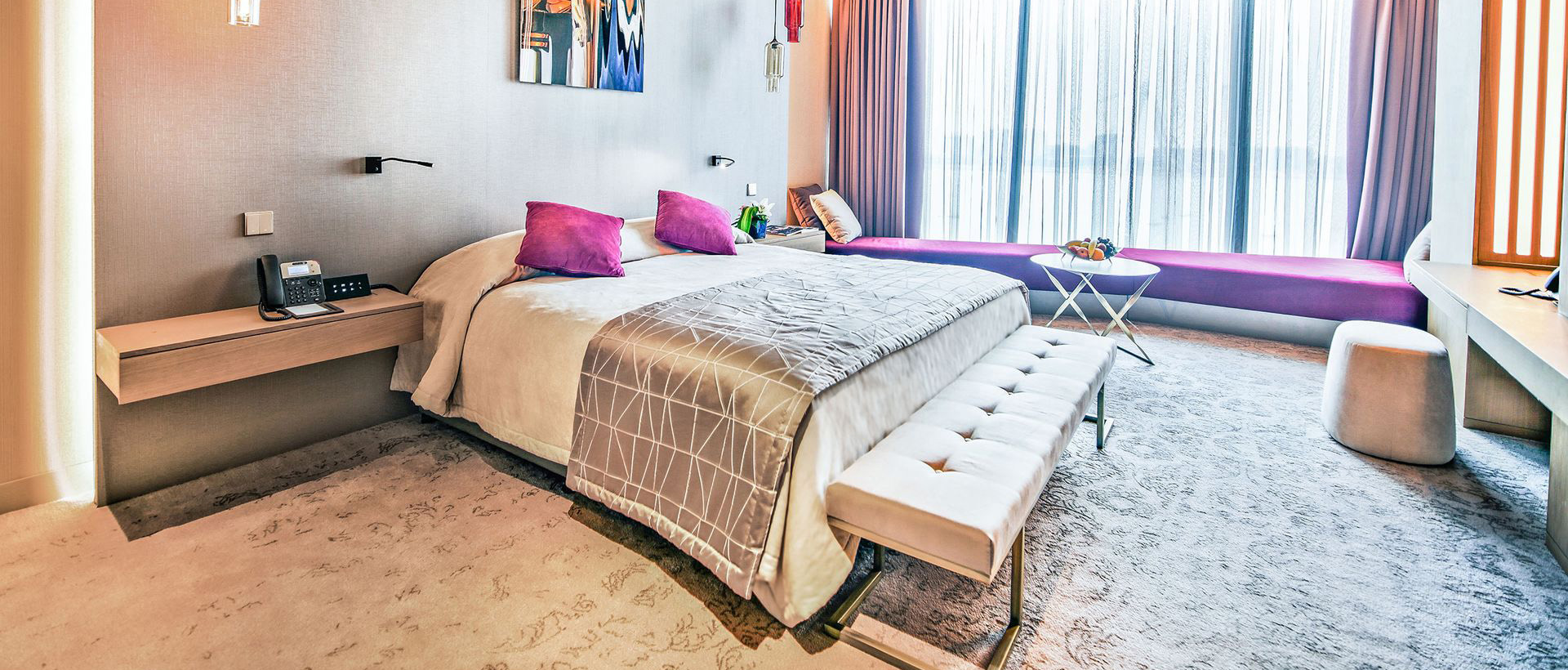 В спальне имеются двуспальная кровать и ванная комната с ванной, отдельным душем и роскошными туалетно-косметическими принадлежностями марки Chopard. Эти роскошные люксы находятся на 32–35 этаже, их площадь составляет 84–94 кв. метра.