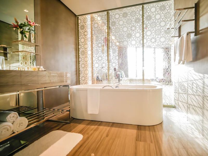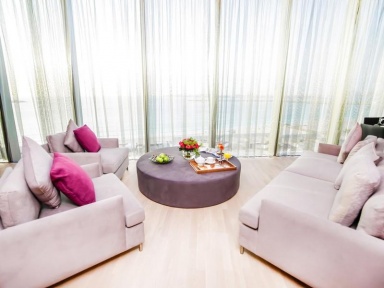 Через французские окна открывается панорамный вид на кристально чистые воды Персидского залива. В 2 спальнях имеются двуспальная кровать и ванная комната с ванной, отдельным душем и роскошными туалетно-косметическими принадлежностями марки Chopard. Эти роскошные люксы находятся на 32–34 этаже, их площадь составляет 125–150 кв. метров.