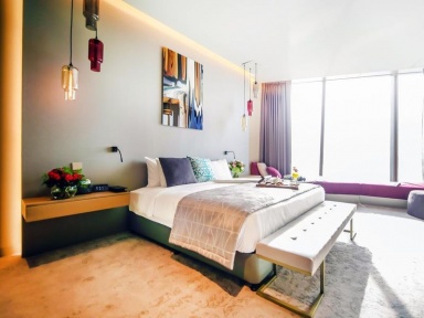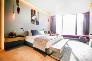 В спальне имеются двуспальная кровать и ванная комната с ванной, отдельным душем и роскошными туалетно-косметическими принадлежностями марки Chopard. Эти роскошные люксы находятся на 32–35 этаже, их площадь составляет 84–94 кв. метра.