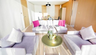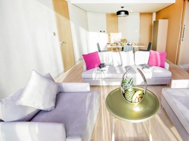 Гостиная с оборудованной кухней, 2 спальни, есть межкомнатная дверь, 3 ванные комнаты, с видом на море, кровати king - size, услуги дворецкого, макс. 4 + 2 чел.).