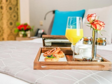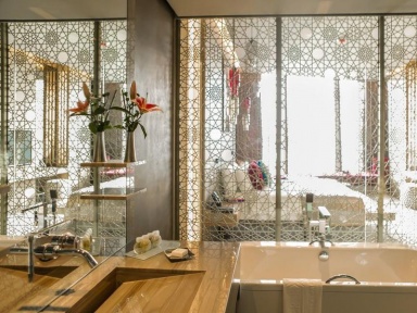 Широкие дверные проемы ведут в спальню с панорамным видом и ванной комнатой с ванной, отдельным душем и роскошными туалетно-косметическими принадлежностями марки Chopard. В отеле есть 4 номера со всеми удобствами для гостей с ограниченными физическими возможностями.