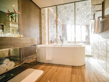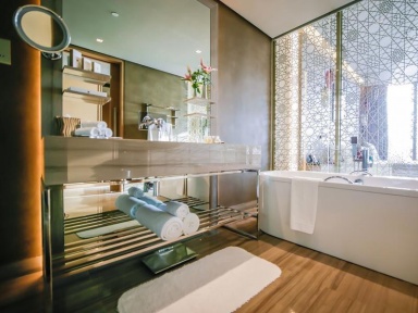 В спальне имеется ванная комната с ванной, отдельным душем и роскошными туалетно-косметическими принадлежностями марки Chopard. Эти роскошные суперлюксы находятся на 6–31 этаже, их площадь составляет 84–94 кв. метра.